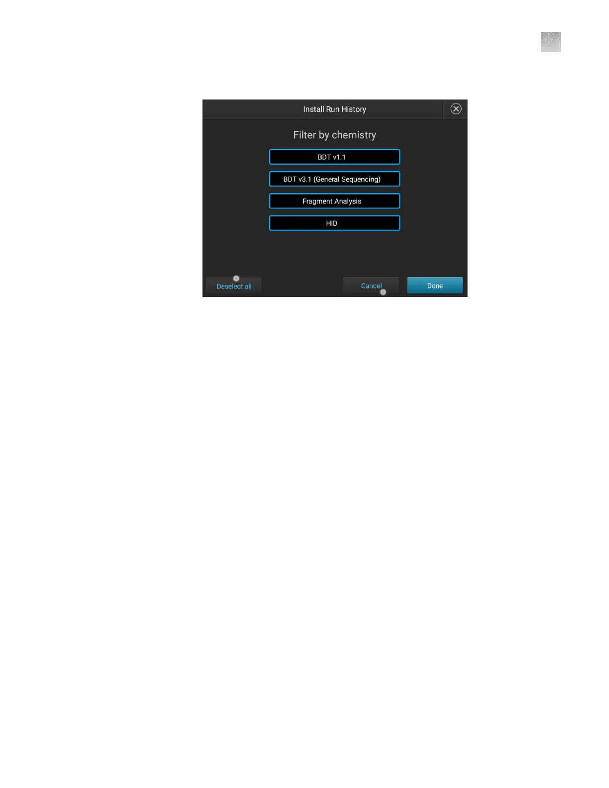 (Optional) Touch Filter, select the install run type, then touch Done.
