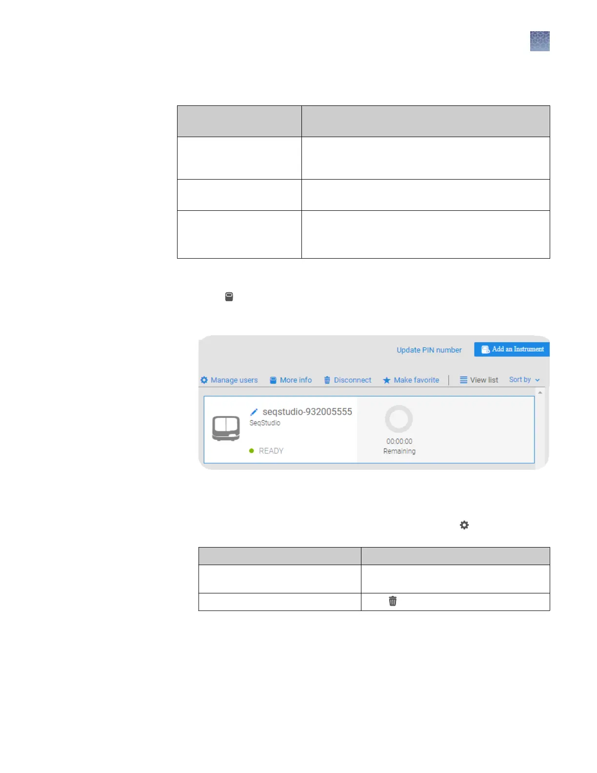 users for an instrument or disconnect an instrument from InstrumentConnect.