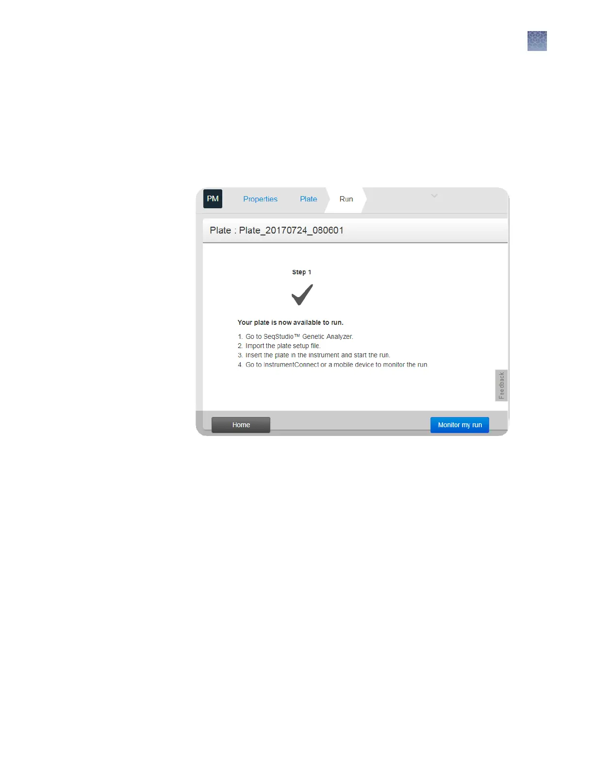A run is accessible from the Plate Manager for 24 hours after the run is complete, or