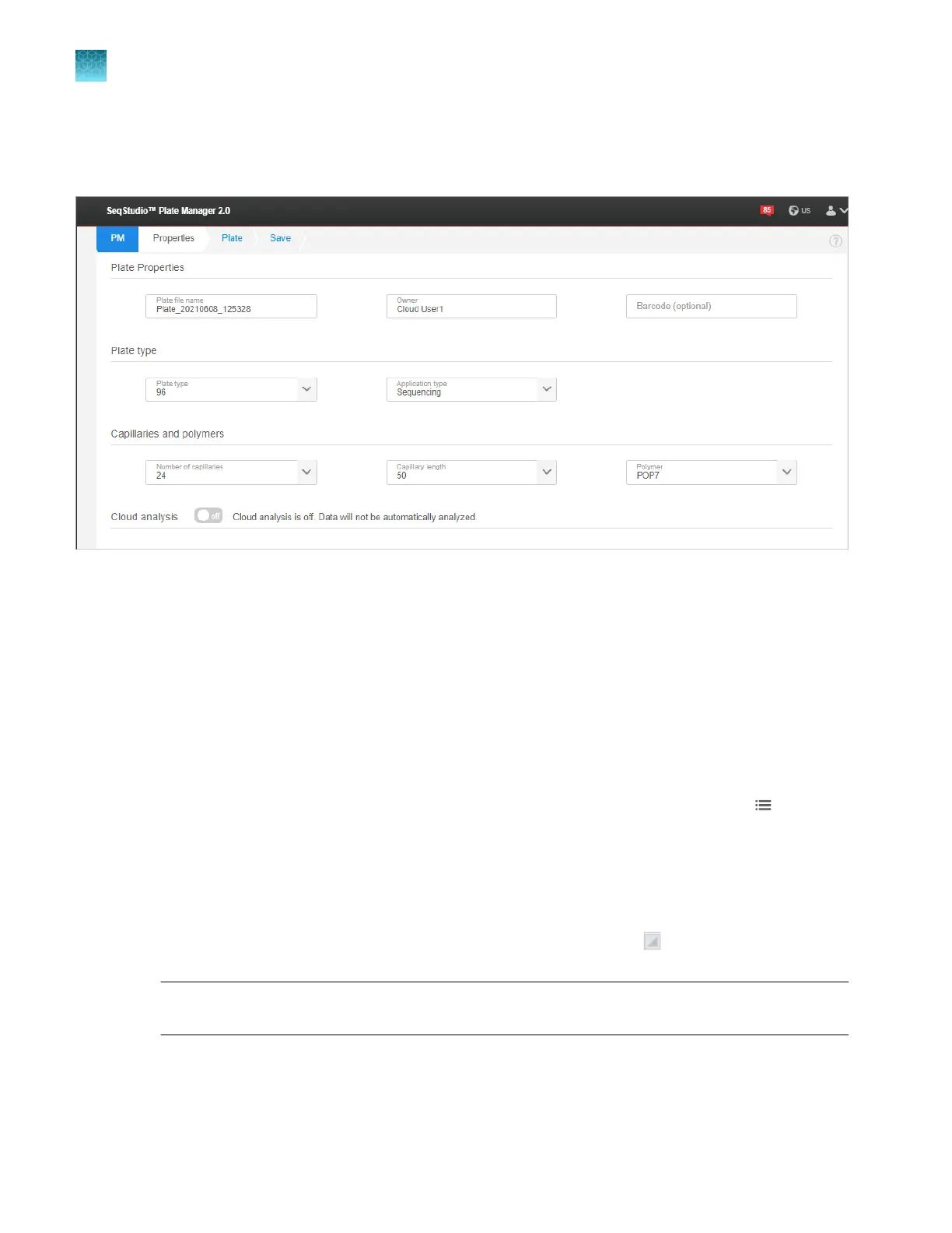 (Optional) In the Properties tab, edit the entries in the Plate file name, Barcode, or Owner fields.