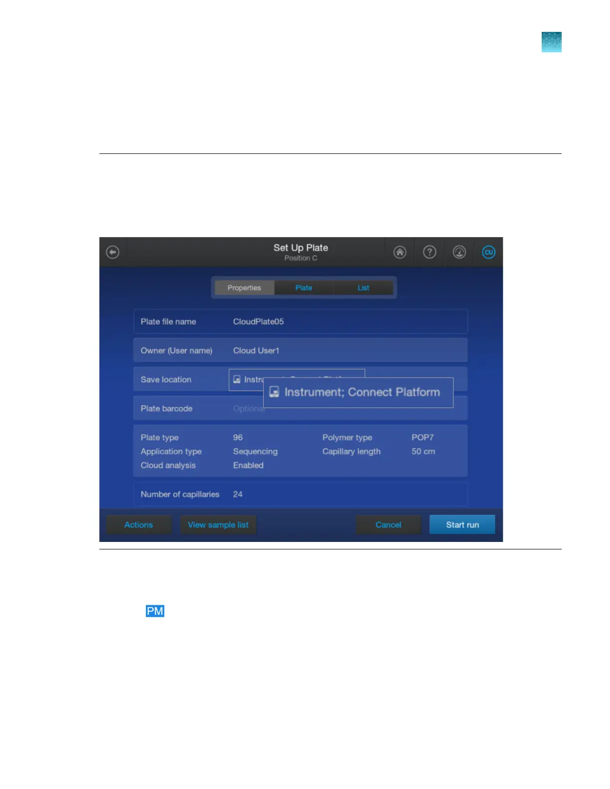Save location, a warning message is displayed. You cannot start the run until you specify Connect