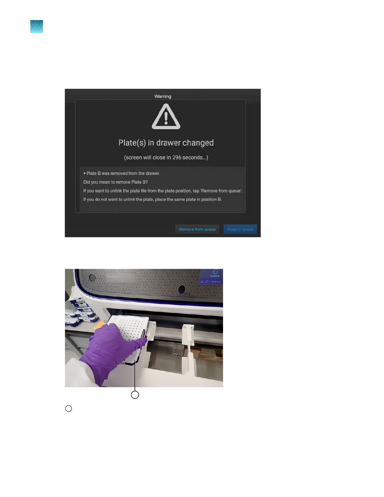 removed the plate (see the following figure). Tap Remove from queue. The position status in the