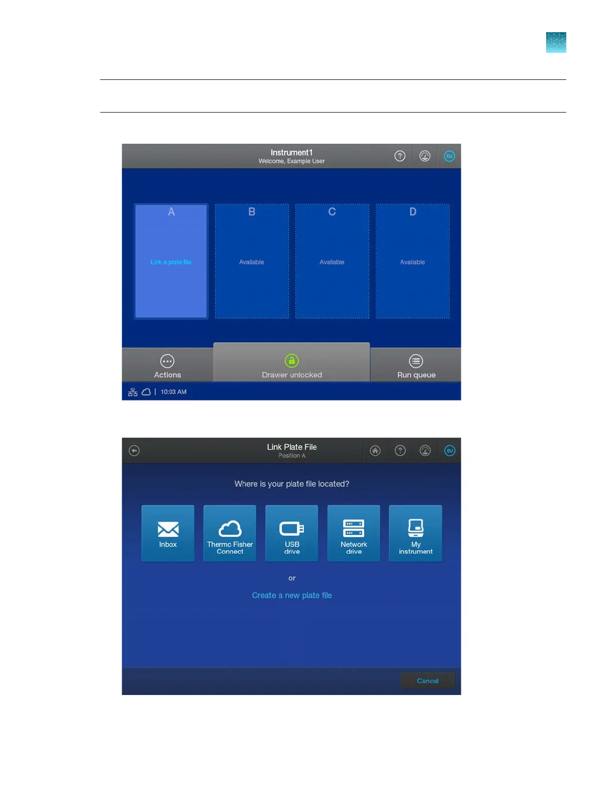 In the home screen, tap Link a plate file in the plate position for the loaded plate.