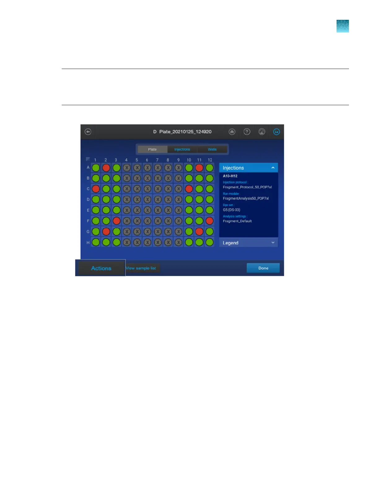 In the Plate tab or Injections tab, tap Actions4Pause instrument.