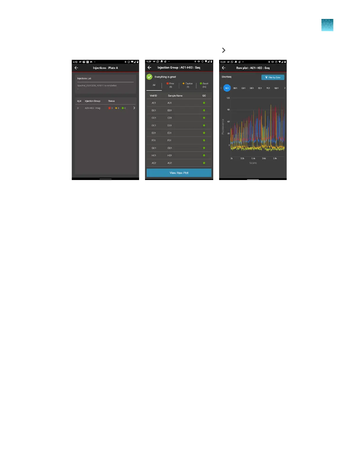 ap a well, then tap View Raw Plot to display the electropherogram.