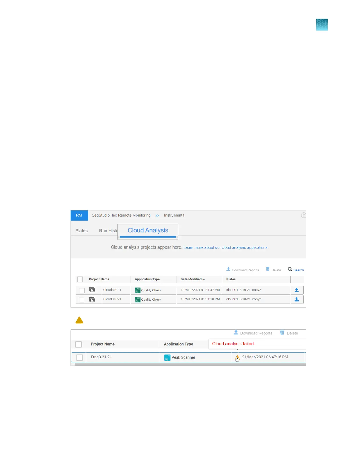 If a project is not listed in the Cloud Analysis tab, see “Remote Monitoring software troubleshooting”