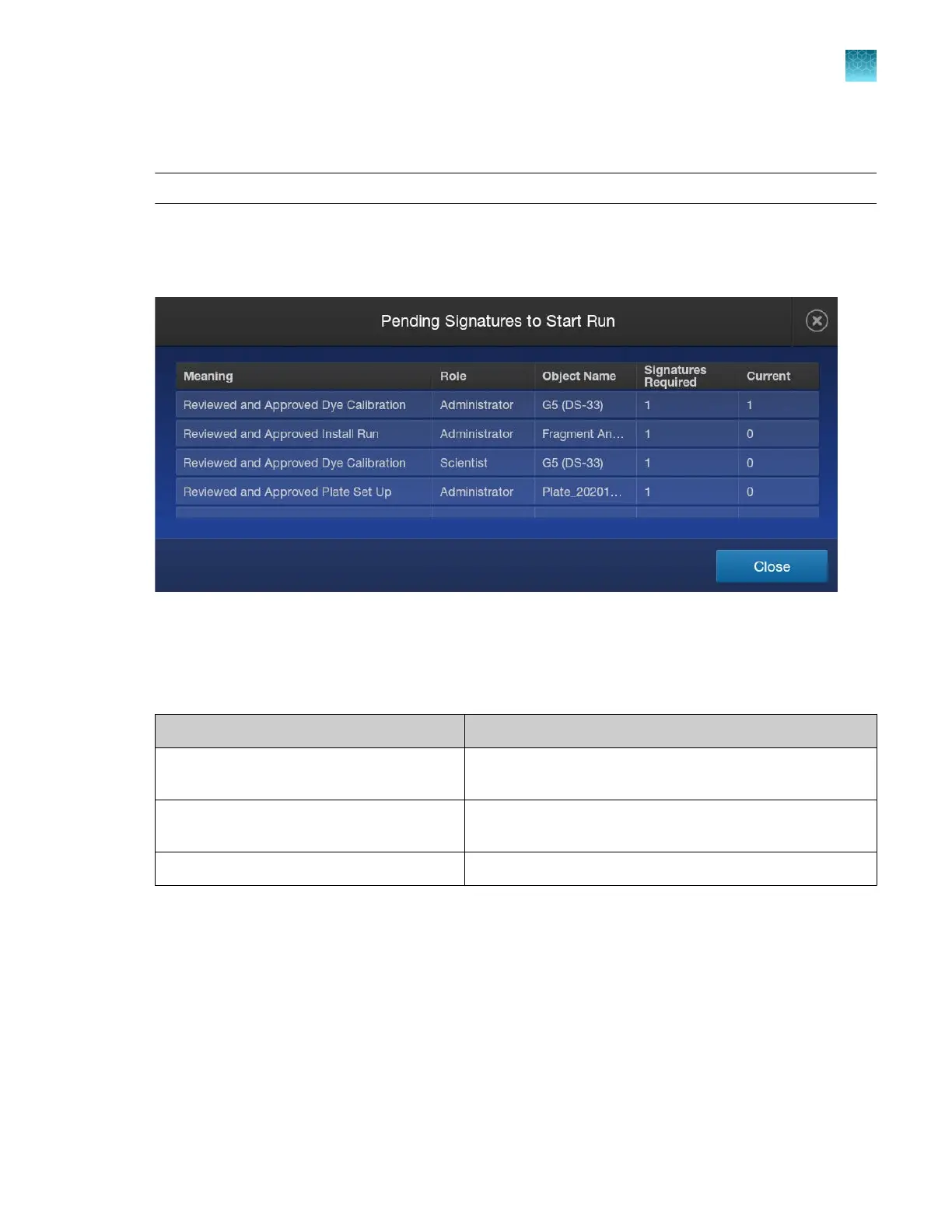 If your system is configured to require a signature when you start a regular run (that is, not a calibration