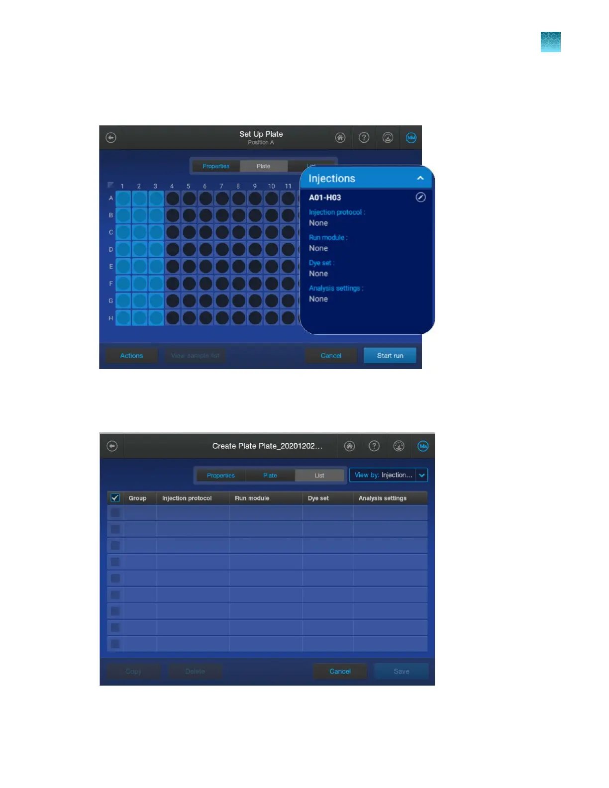 To display this screen, tap the Plate tab.