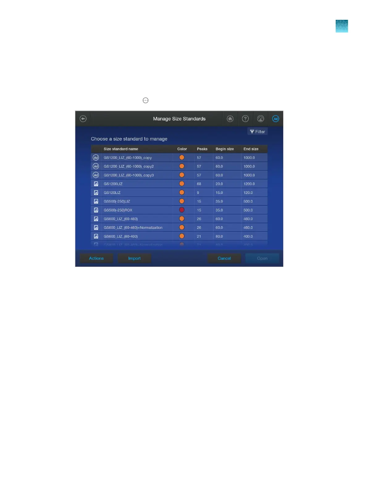 ap a normalization size standard, click Open, then tap Copy.