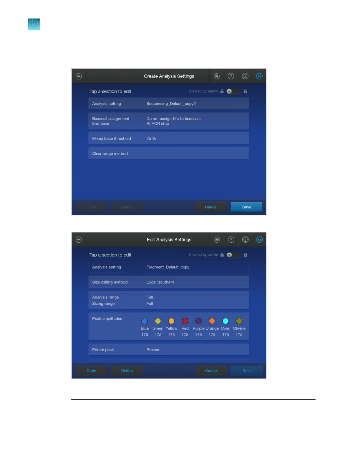 or fragment analysis, see “Analysis settings—Fragment analysis” on page 295.