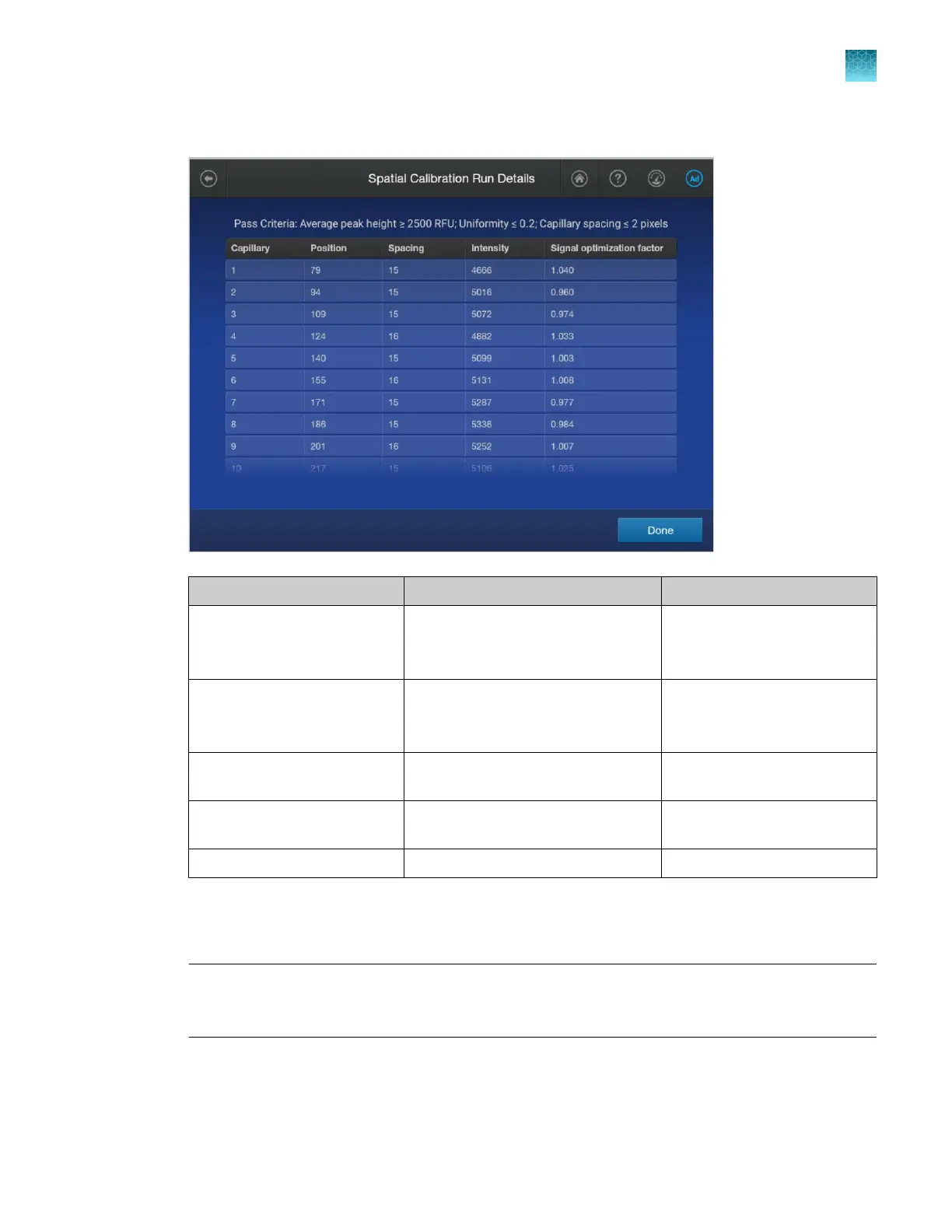 for each capillary during spatial calibration. The factor for each capillary is applied during data
