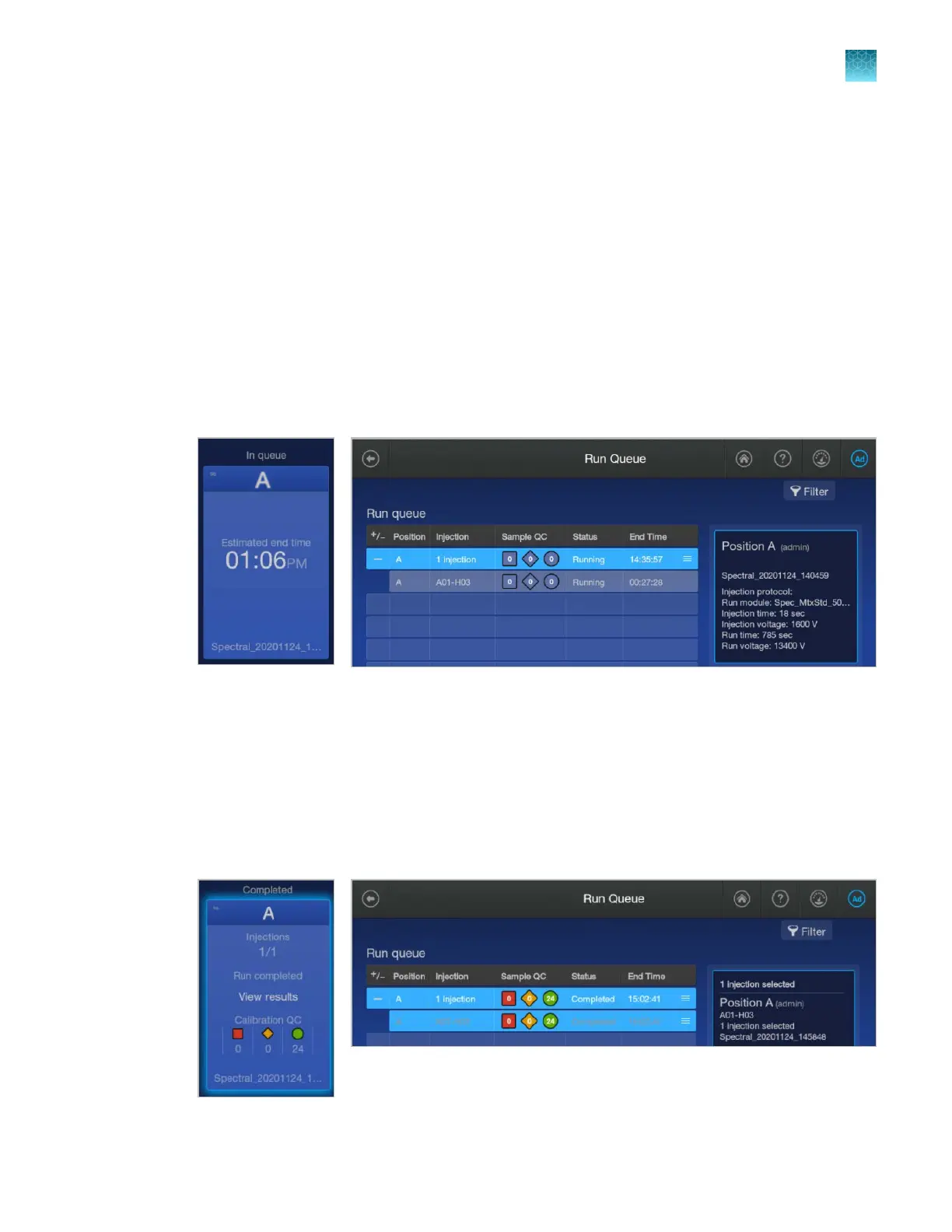 When the spectral calibration is complete, tap the plate position in the home screen or in the Run