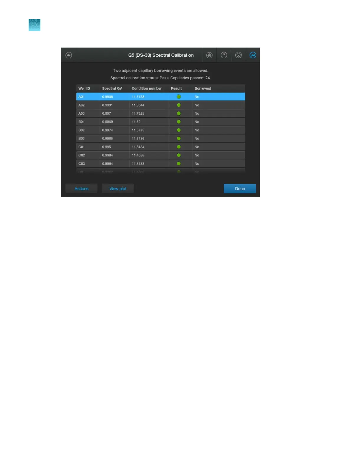 A Spectral QV (quality value) reflects the confidence that the individual dye emission signals can be