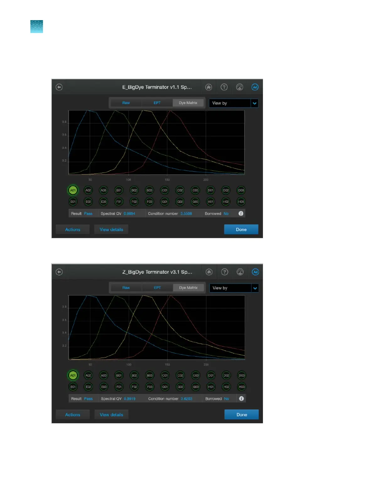 Dye set Z generated from a sequencing install run (dye matrix view)