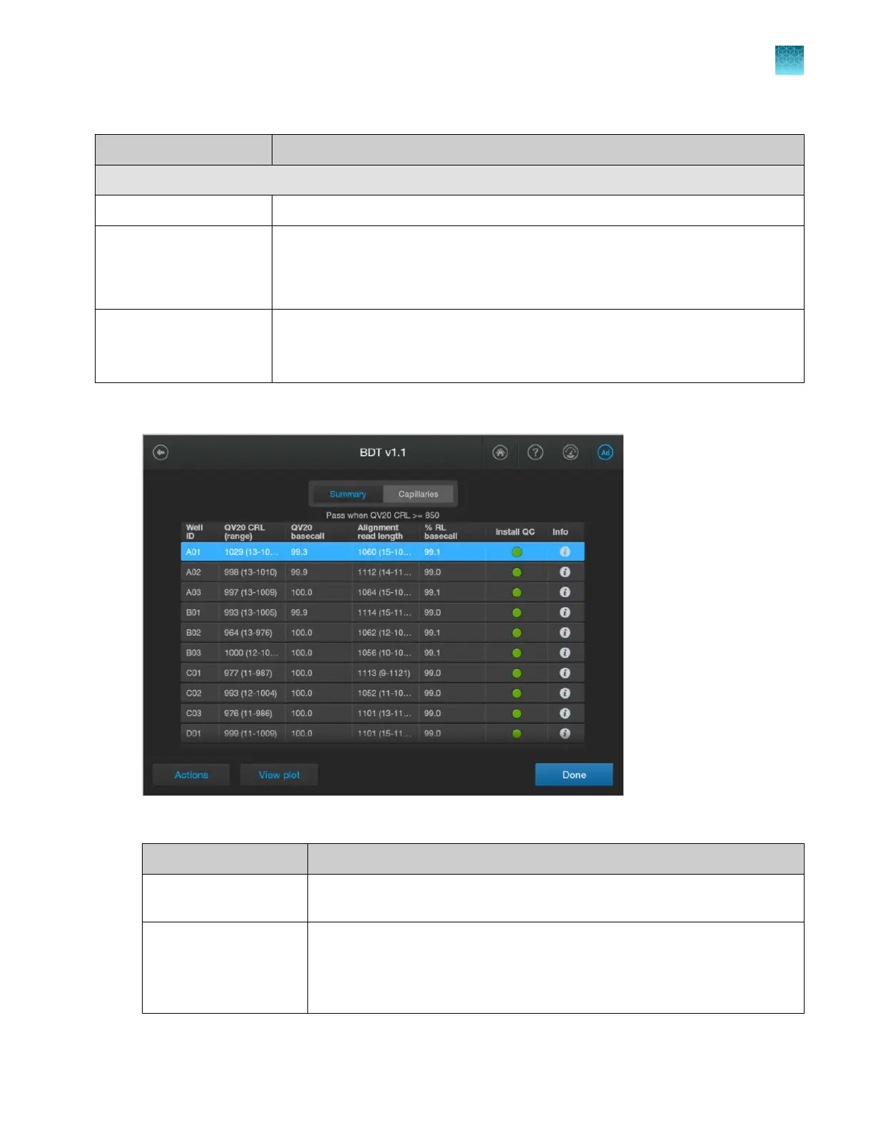 Table 12 Capillaries tab—sequencing install run