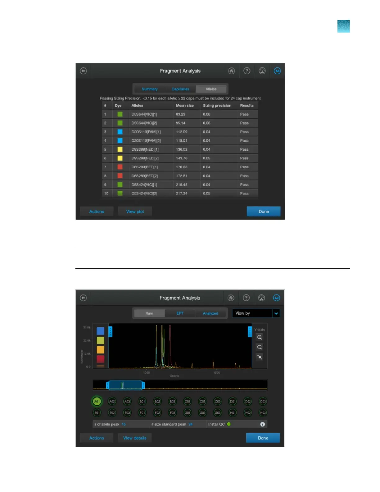 ap View plot to display the plot for each capillary (Raw and Analyzed tabs are shown below).