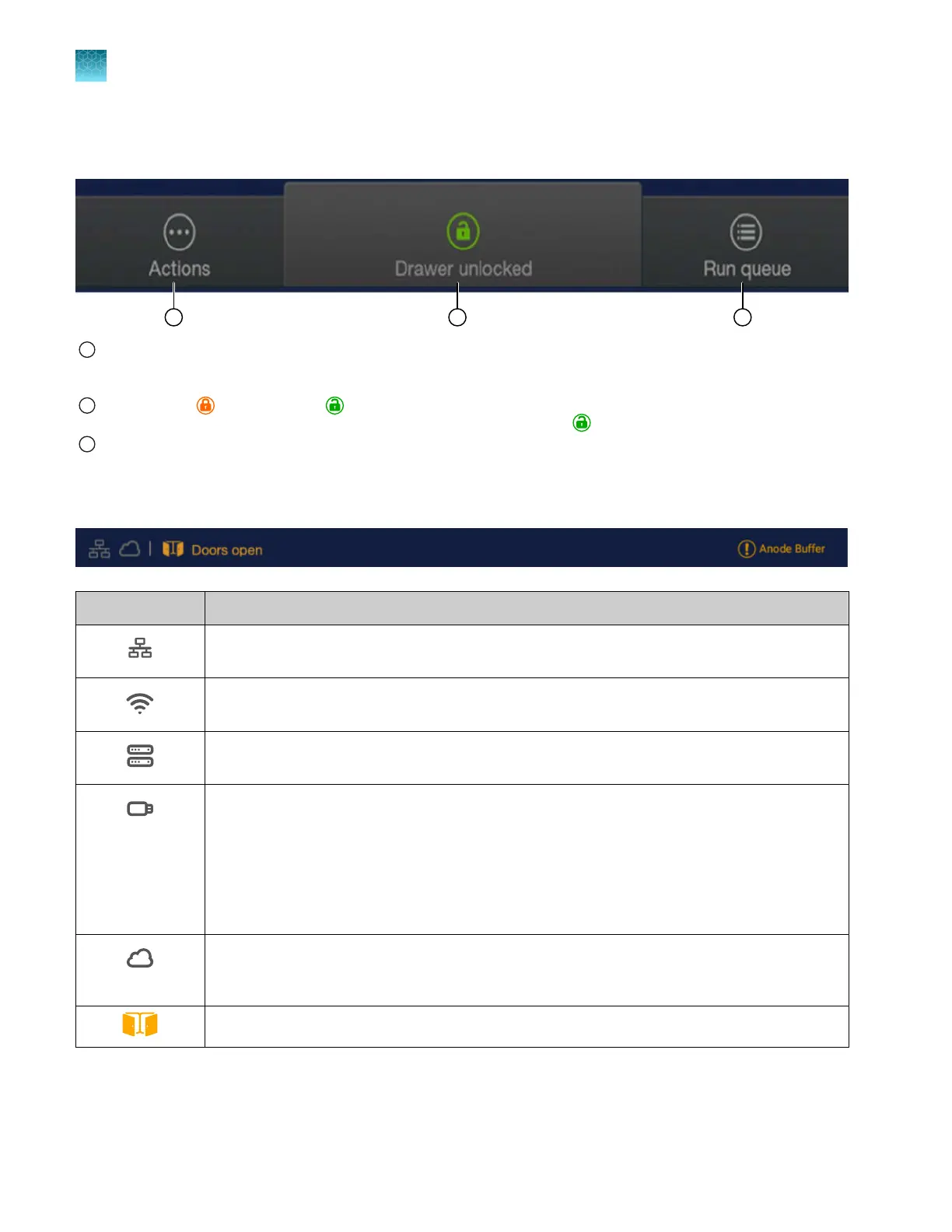 Drawer status— (Drawer locked), (Drawer unlocked), Dr