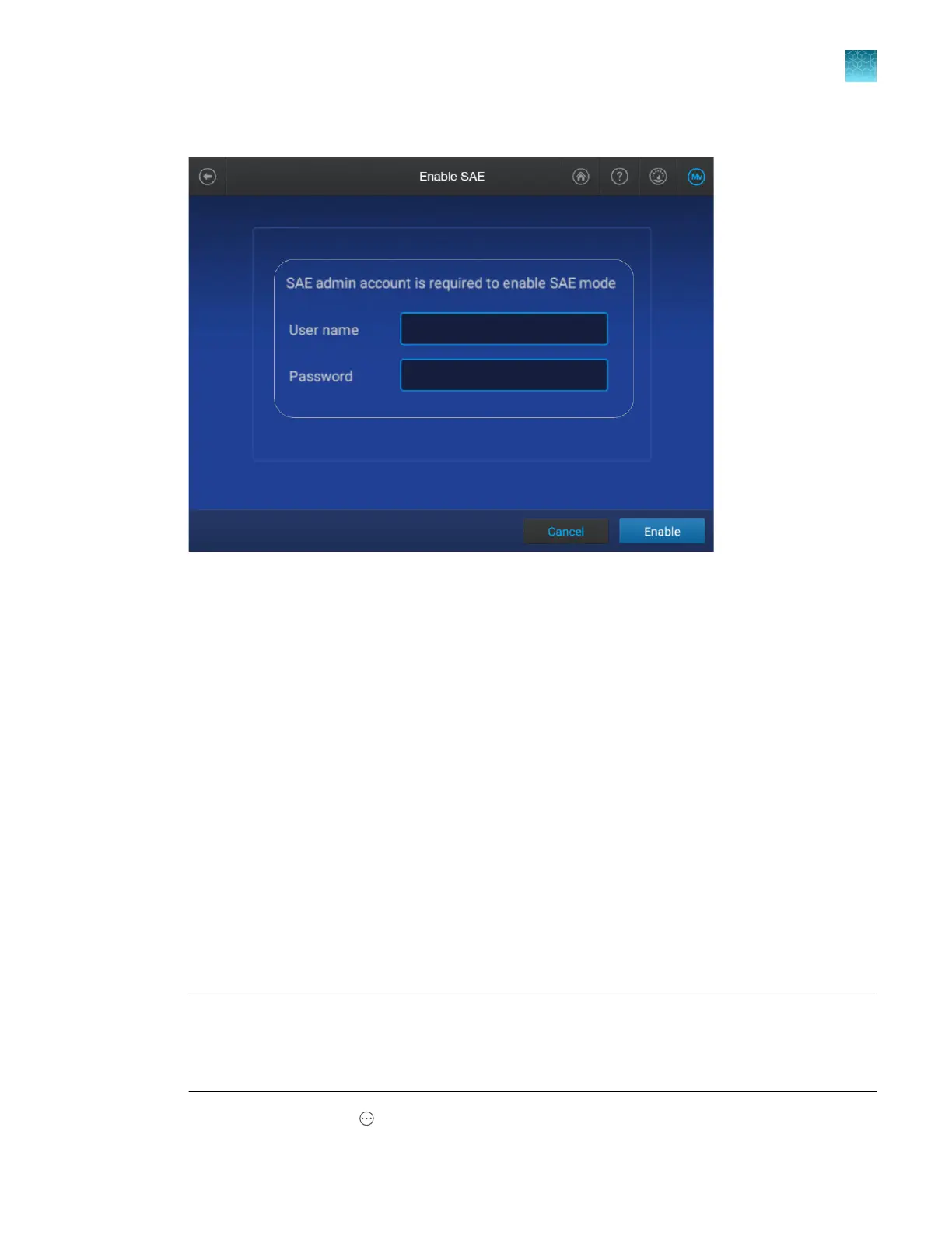Enter your SAE administrator account user name and password, then tap Enable.