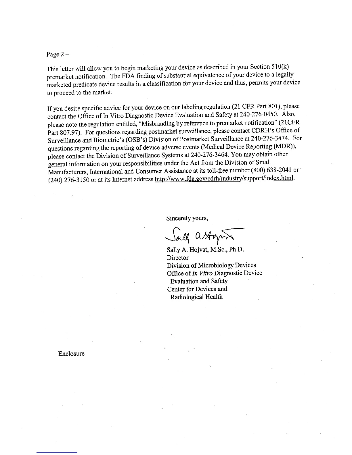 http://www.fda.gov/cdrh/industrV/support/index.html.