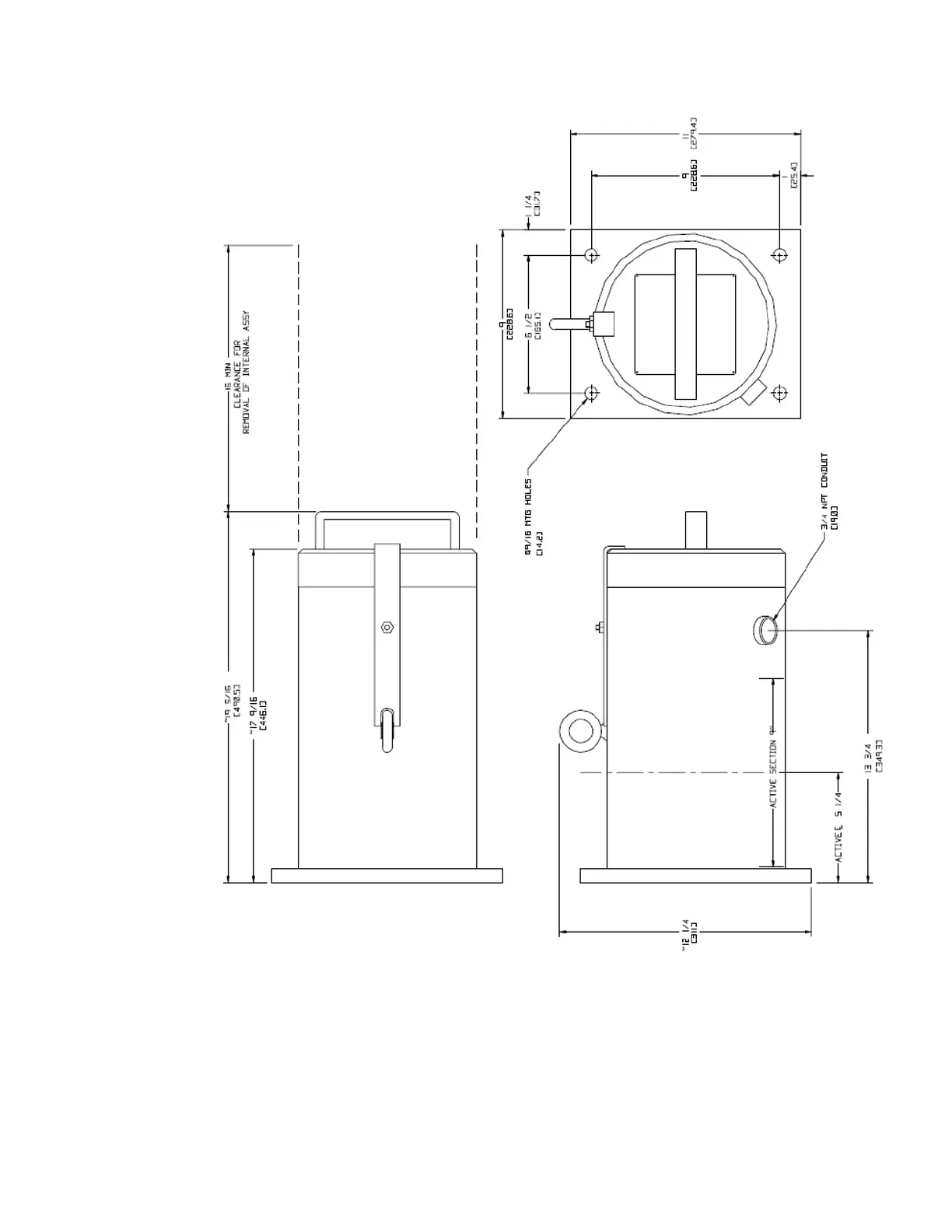 Figure C–19. 866777: Mounting dimensions, 9702 ion chamber detector, explosion proof housing