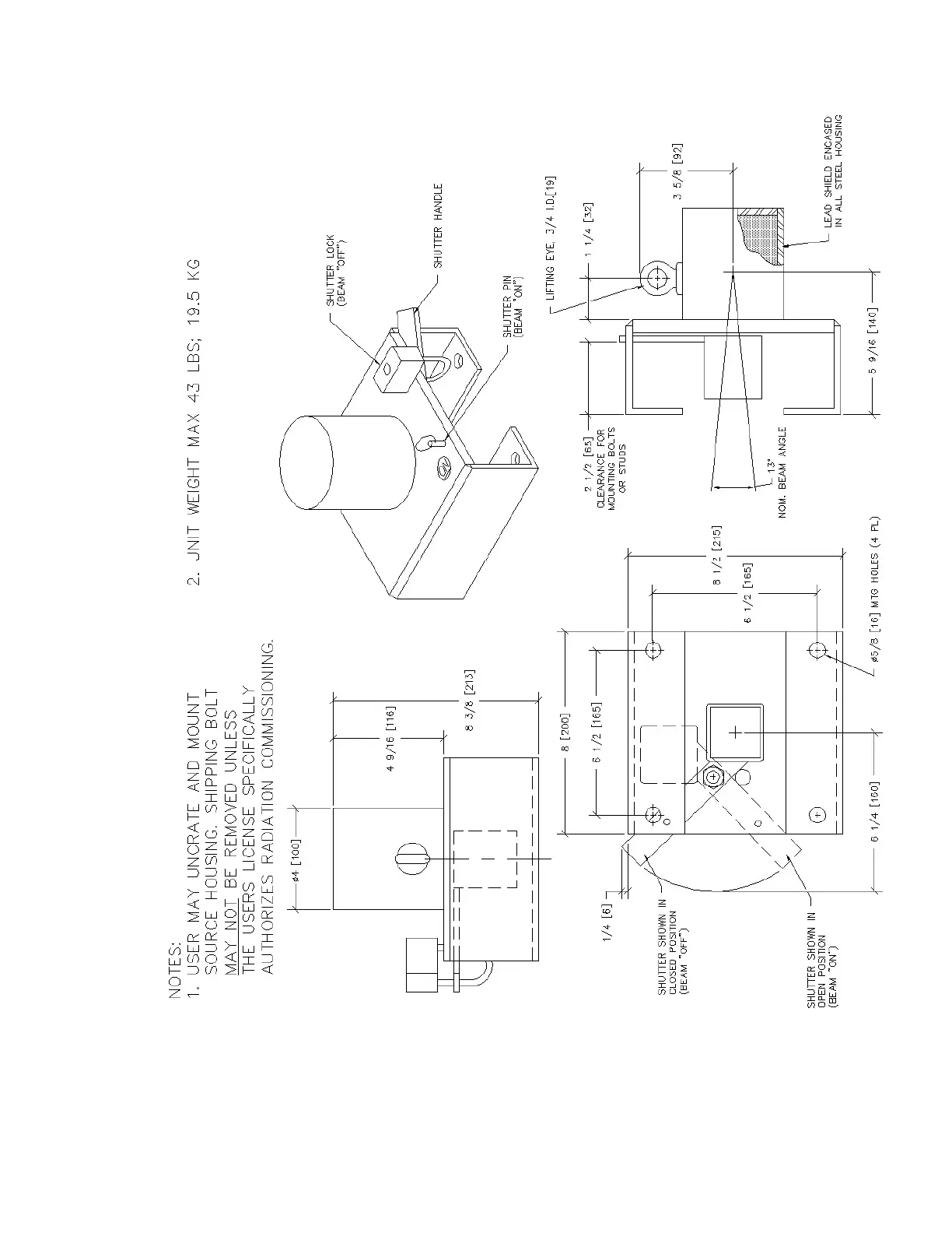 Figure C–22. 865453: Mounting dimensions – Model 5201 source housing, 100 mCi or less (sheet 1 of 1)