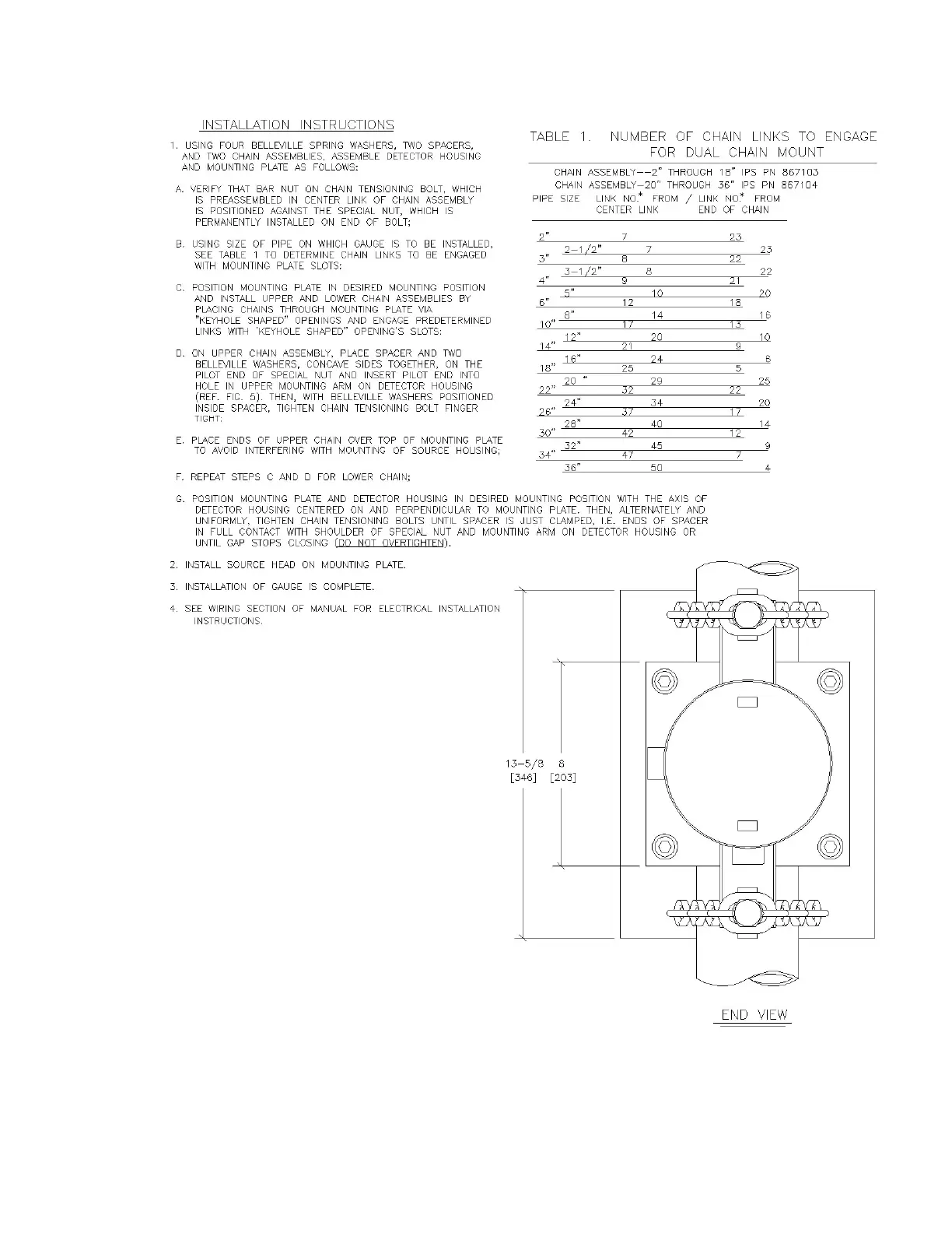 Figure C–31. 867467: Installation drawing, gauge head, two-chain mount, explosion proof housing