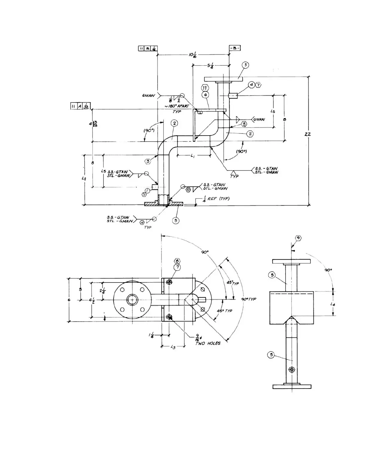 C–37. 861104: Fabrication details, 1” to 3” Z-pipe section (sheet 2 of 2)
