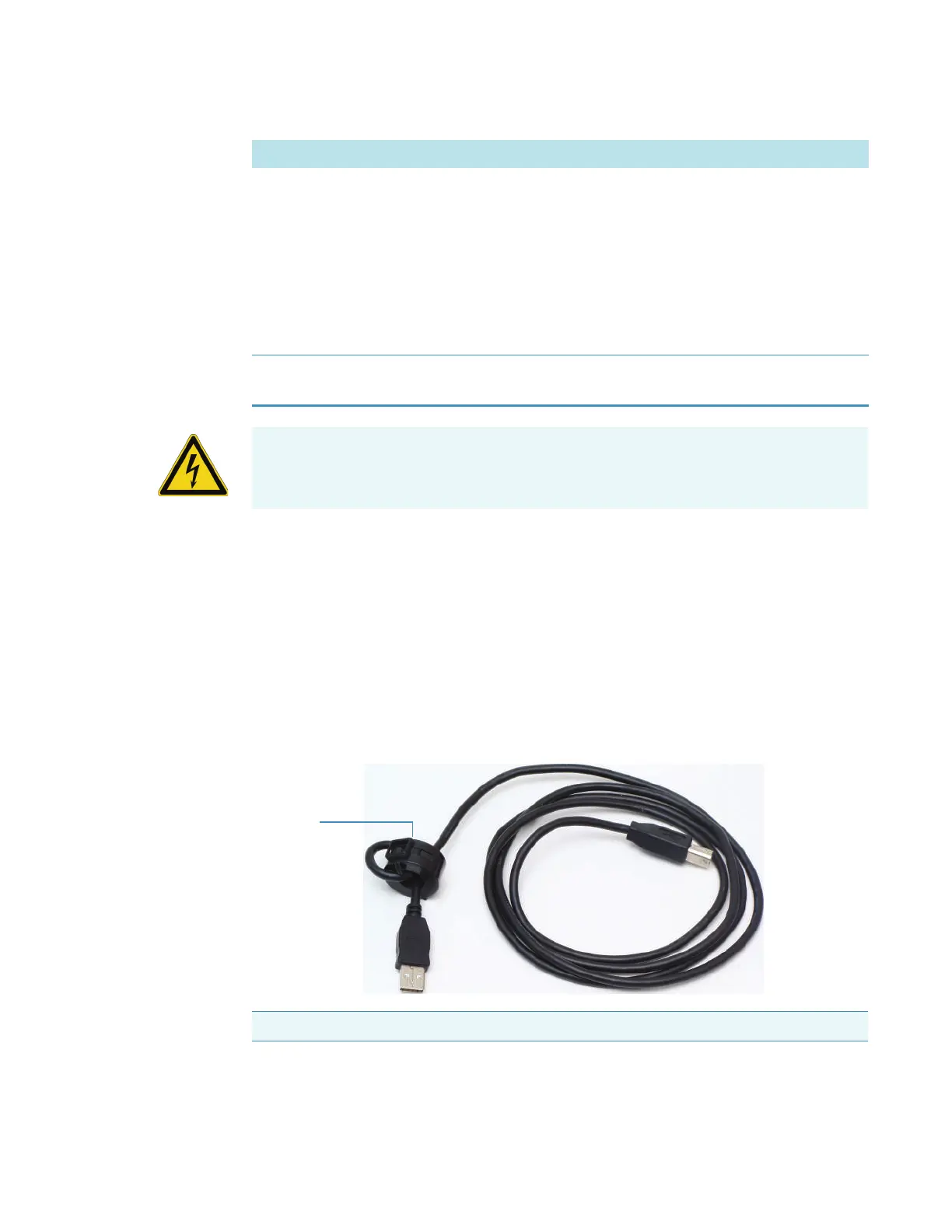 of any USB cable connected to the instrument. Loop the cable once and clamp the ring over