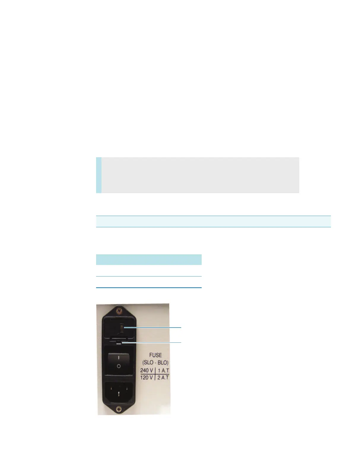 For operation at 120 V, configure the voltage selector on the Peltier back panel and insert the