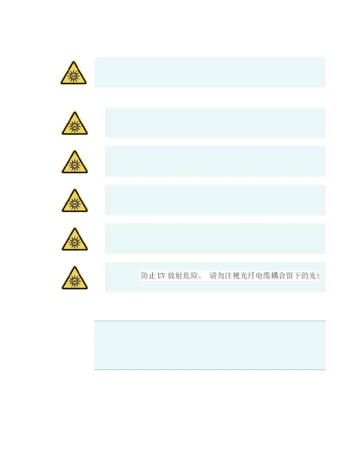 WARNING Avoid UV radiation hazard. Do not stare at the beam or light leaving a