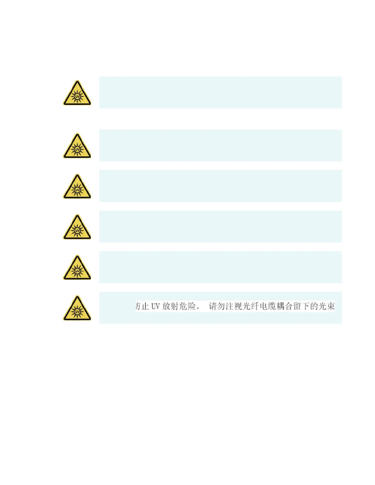 WARNING Avoid UV radiation hazard. Do not stare at the beam or light leaving a