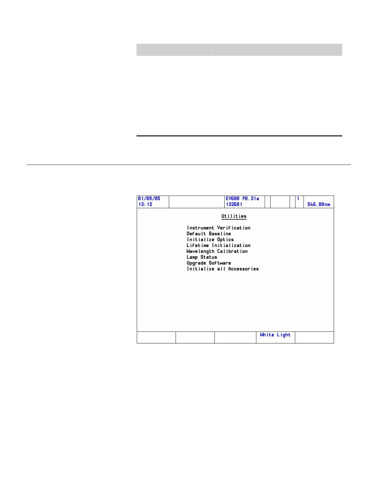 To access the Utilities window, press the Utilities function key. Highlight