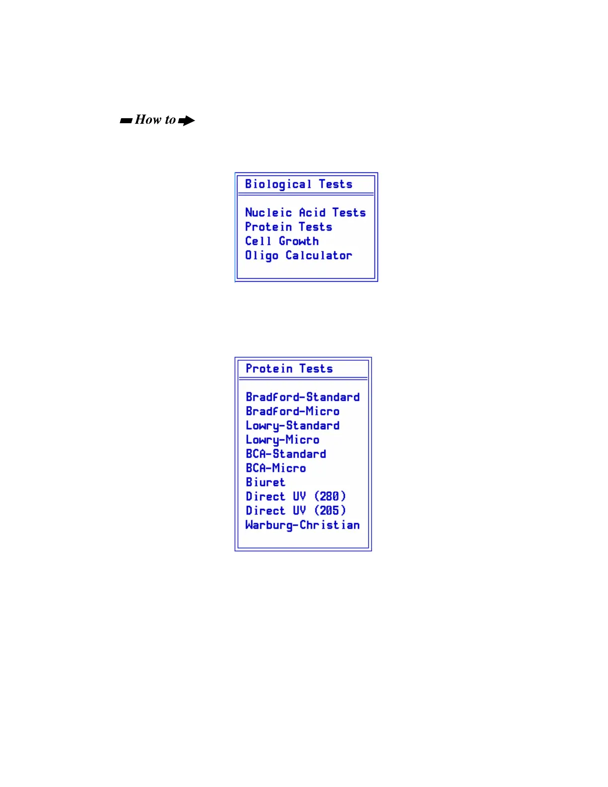 2. Highlight Protein Tests and press Enter.
