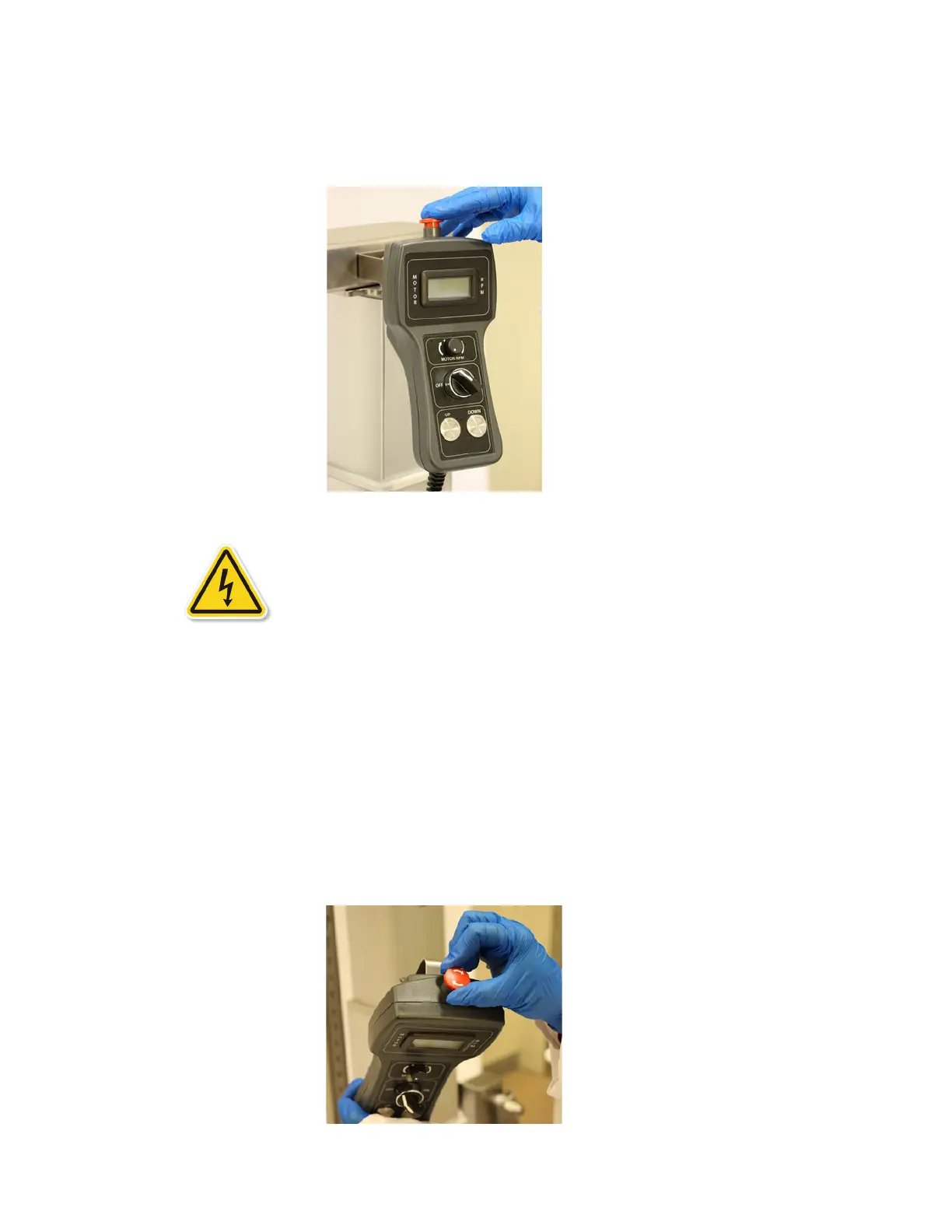 8. Engage the E-Stop button on the top of the handheld control