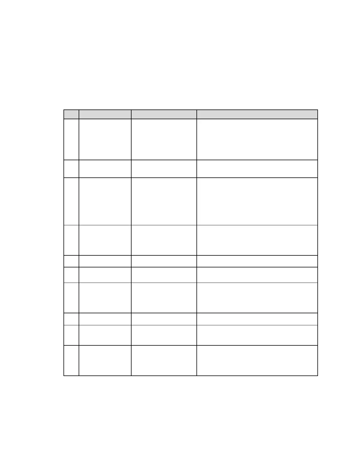 No. Parameter Selection Description