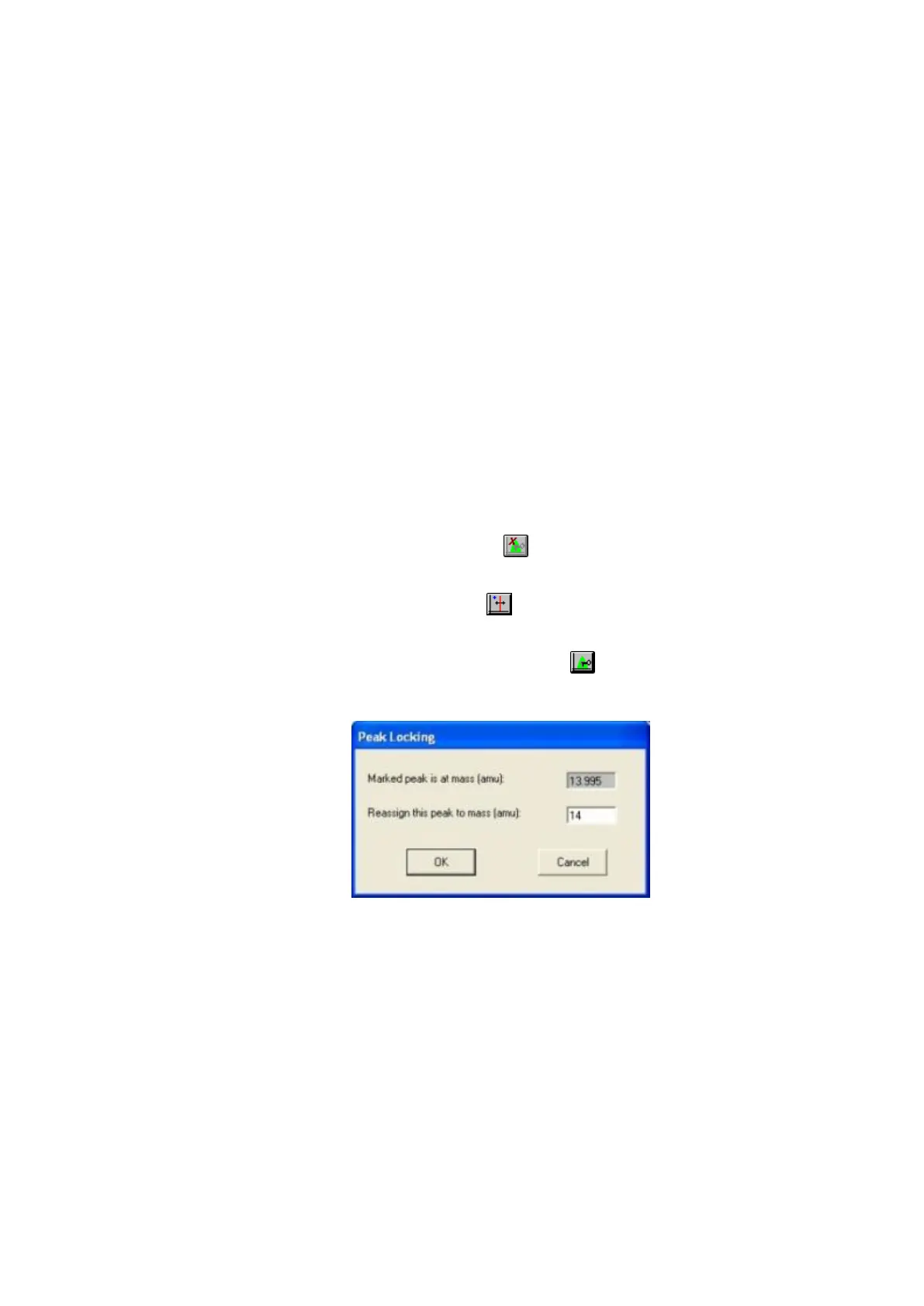 Position the cursor on mass 14 peak and lock this as mass 14.00.