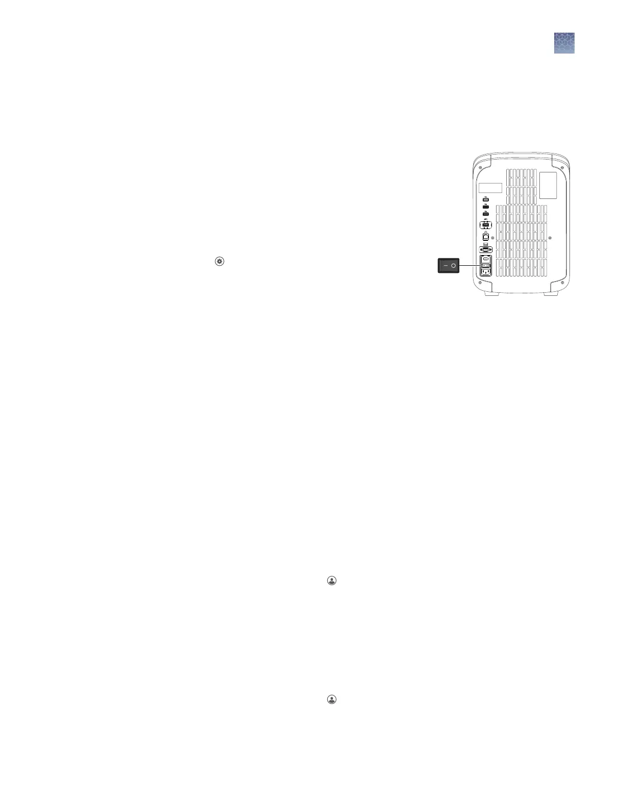 Note: To power o the instrument for >1 week, see “Prepare the instrument to store,