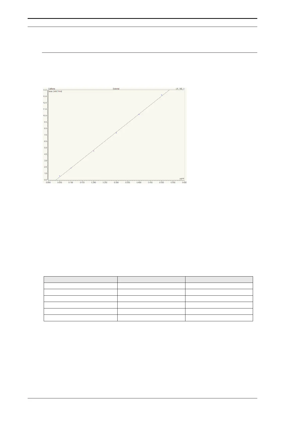 The injection linearity is measured by injecting different amounts of the same caffeine