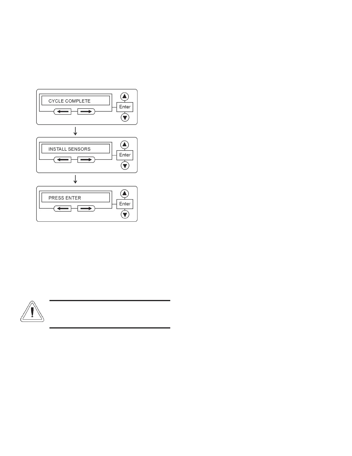 “CYCLE COMPLETE”, “INSTALL SENSORS”, and