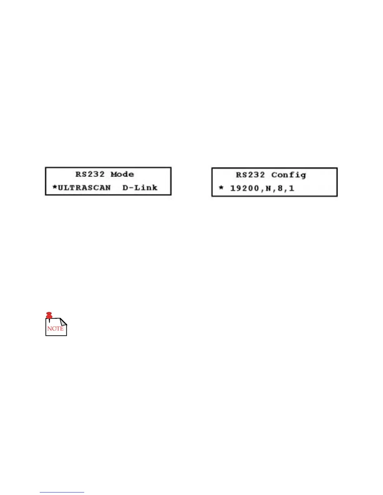 c. Press the DOWN ARROW to display the baud rate selections. The baud rate is the only RS232