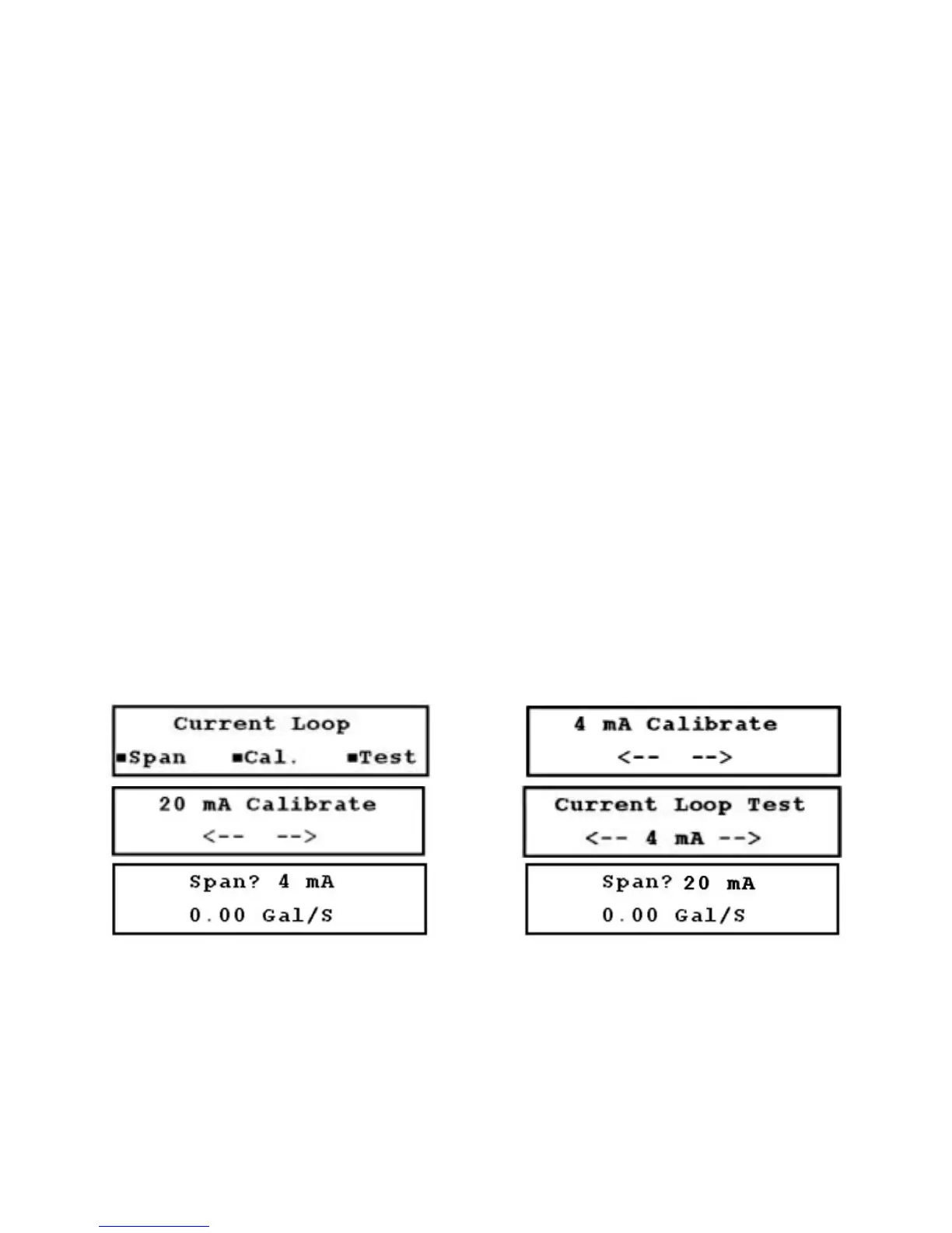 10. Change the current loop output in 1 mA increments using the RIGHT or LEFT ARROWS. The output