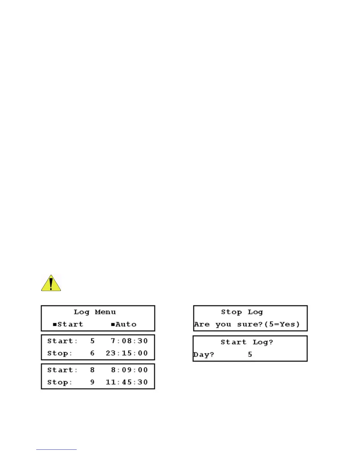 will now start and stop automatically at the preset times. If the logger is running, you can manually stop the