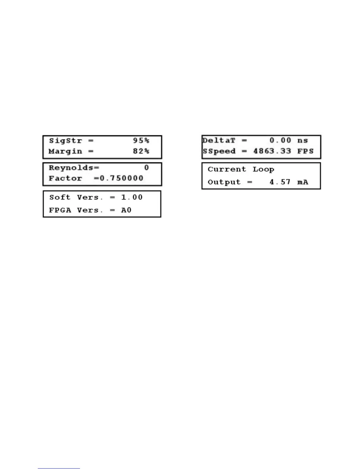 (FPGA VERS.) versions installed in the flowmeter (Figure 3.17-E, below).
