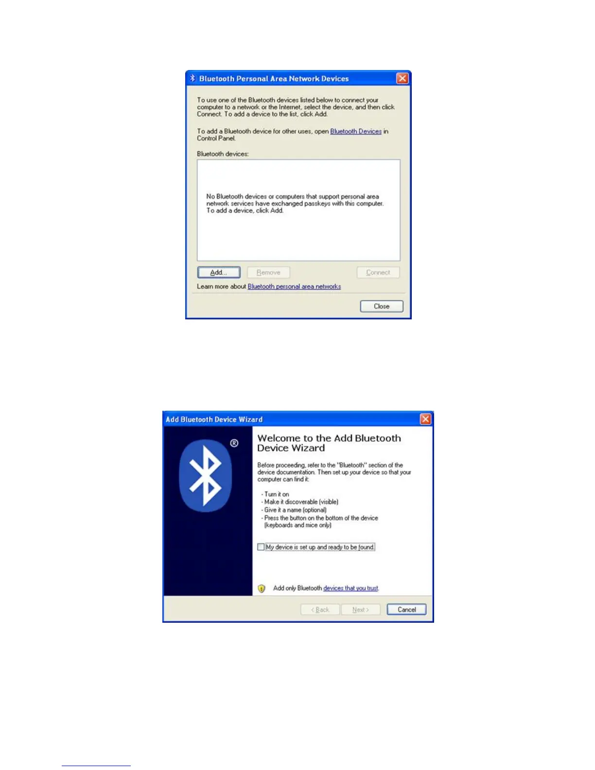 Click “Add” to open the “Add Bluetooth Device Wizard” dialog.