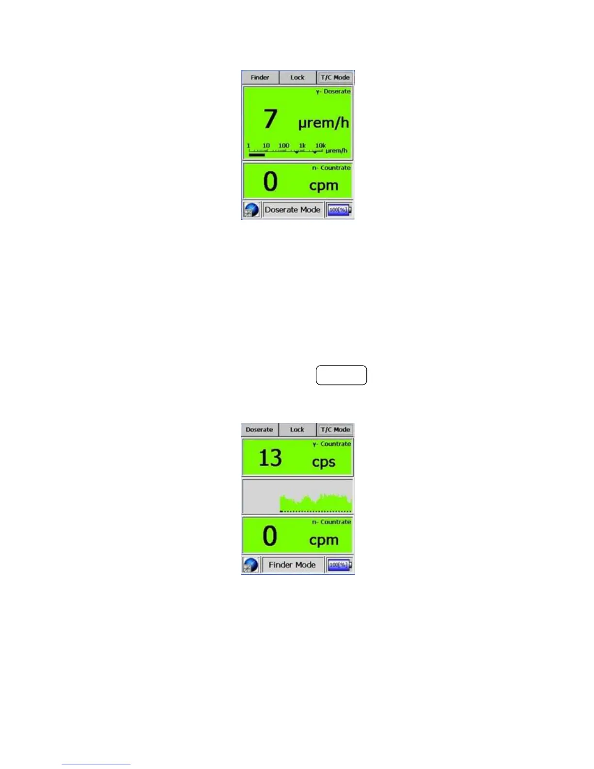 From Dose Rate mode, a press on the left ACTION button switches the device