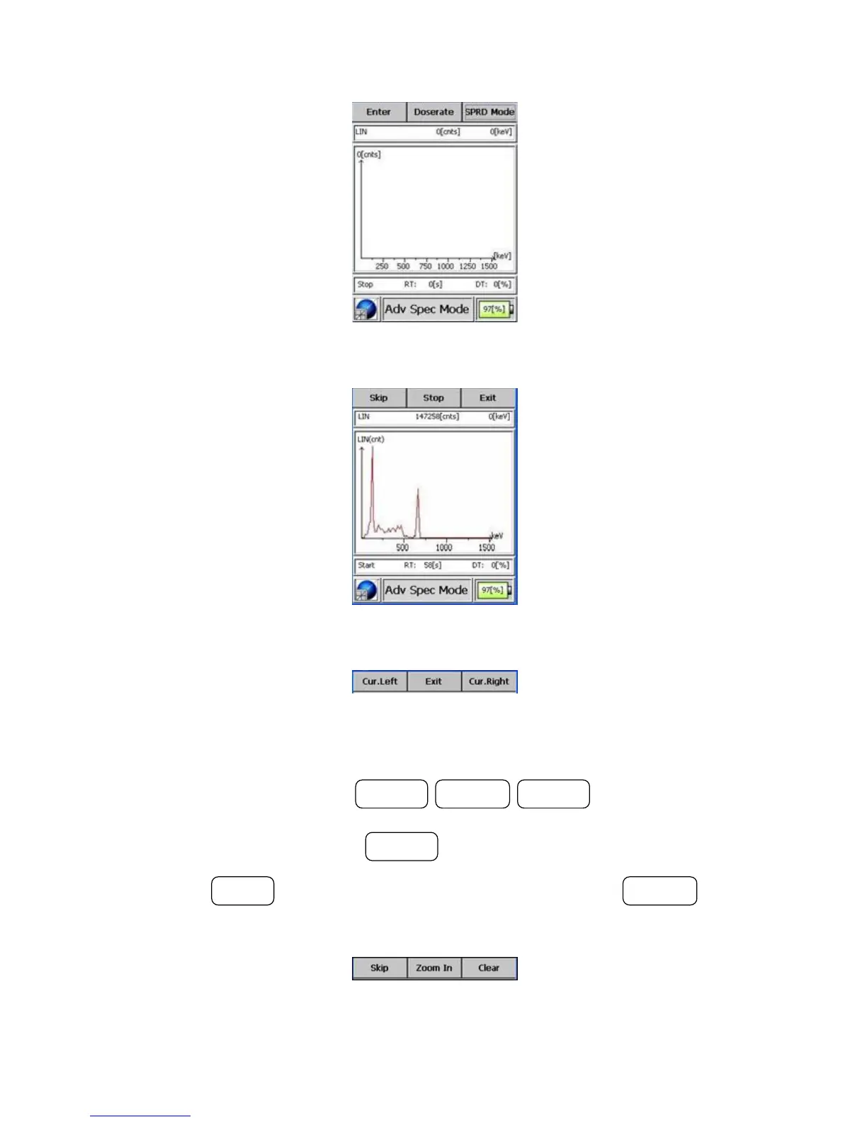 Pressing the MODE button clears the spectrum. Pressing the ACTION button
