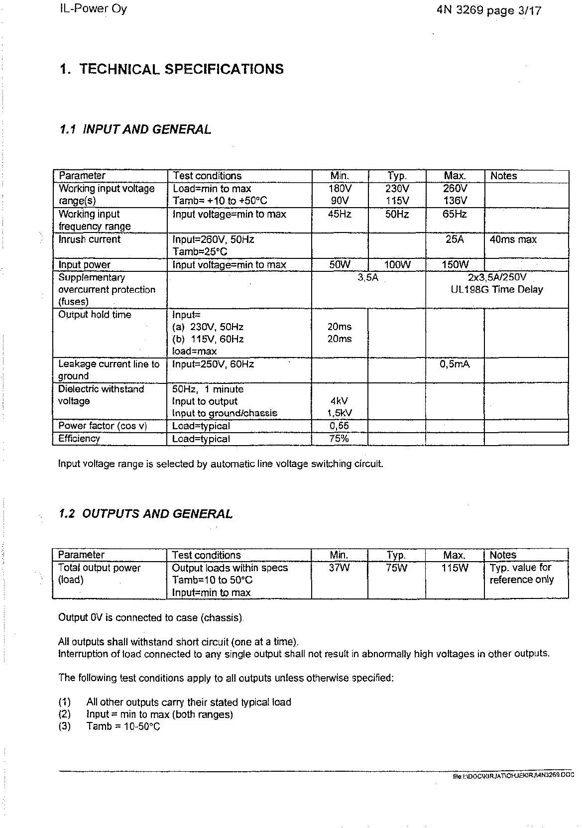 lnput=260V, 50Hz