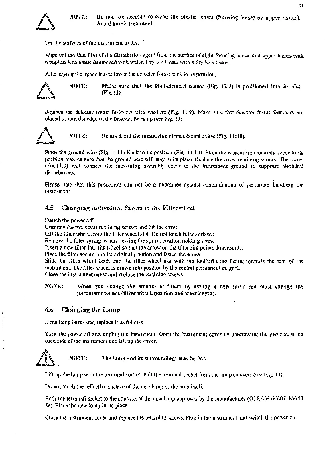 Close the instrument cover and replace the retaining screws. Plug in the instrument and switch the powcr