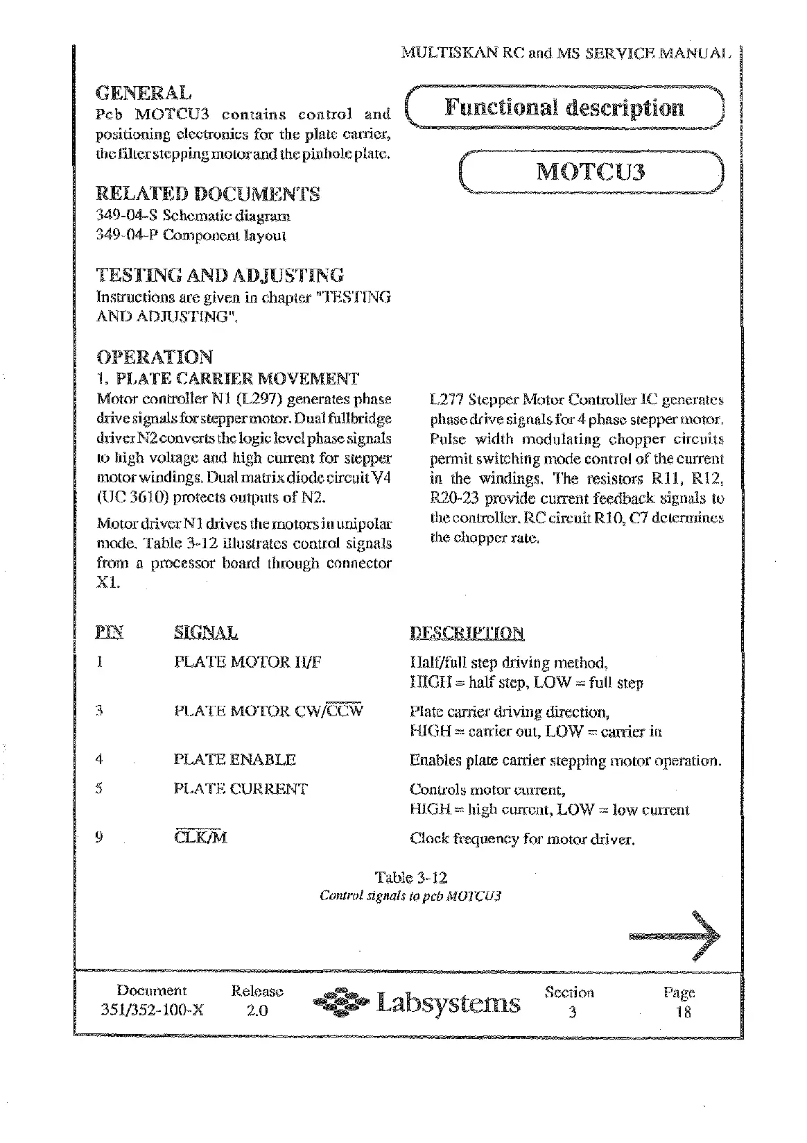 Enables plate carrier stepping motor operation.
