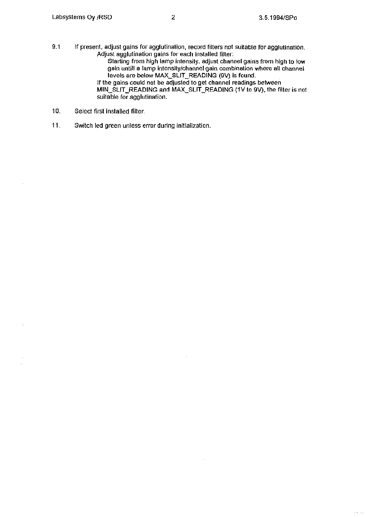 If present, adjust gains for agglutination, record filters not suitable for agglutination.